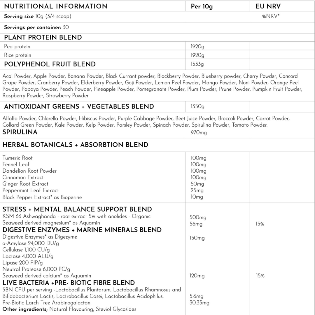 By targeting the key root causes of digestive and gut health issues namely poor diet, lack of diversity + daily stress along with everything else that comes from living our busy lives we have developed a unique product that delivers powerful benefits in one tasty scoop.