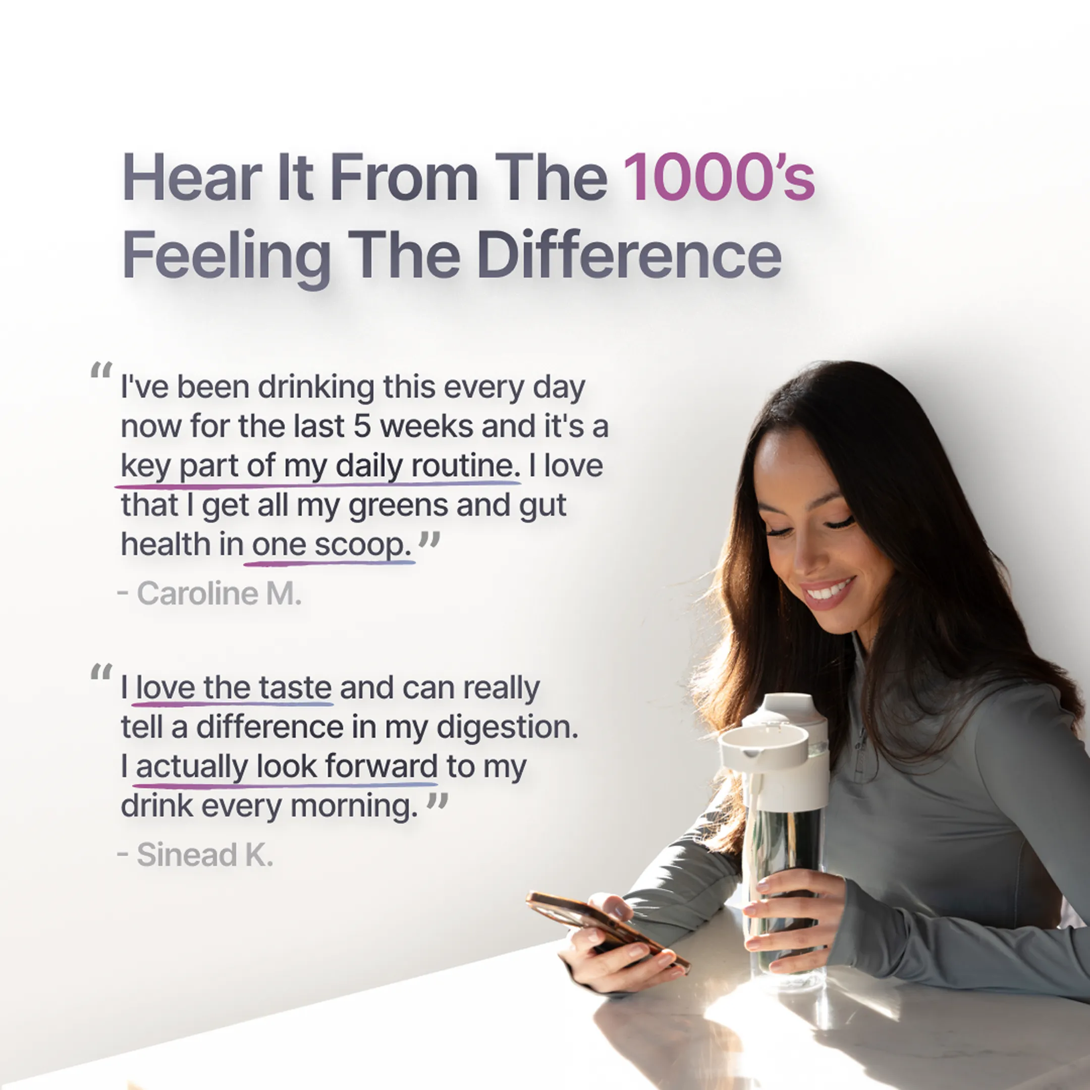 “I've been drinking this every day now for the last 5 weeks and it's a key part of my daily routine. I love that I get all my greens and gut health in one scoop.”